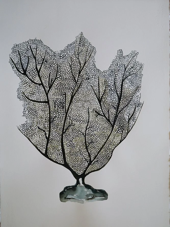Jeg maler med tempera også kalt Gouache - det er pigment med svært lite bindemiddel. Det gir en matt overflate som jeg liker og jeg også opptatt av gjennomskinneligheten - fordi jeg ønsker at den skal la tidligere lag komme frem.